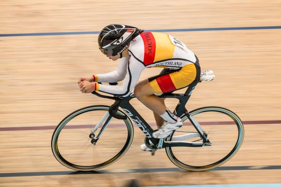 CAPTION: Southland rider Corbin Strong on his way to claiming a national record in the under 17 individual pursuit at the Age Group Track National Championships in Invercargill.